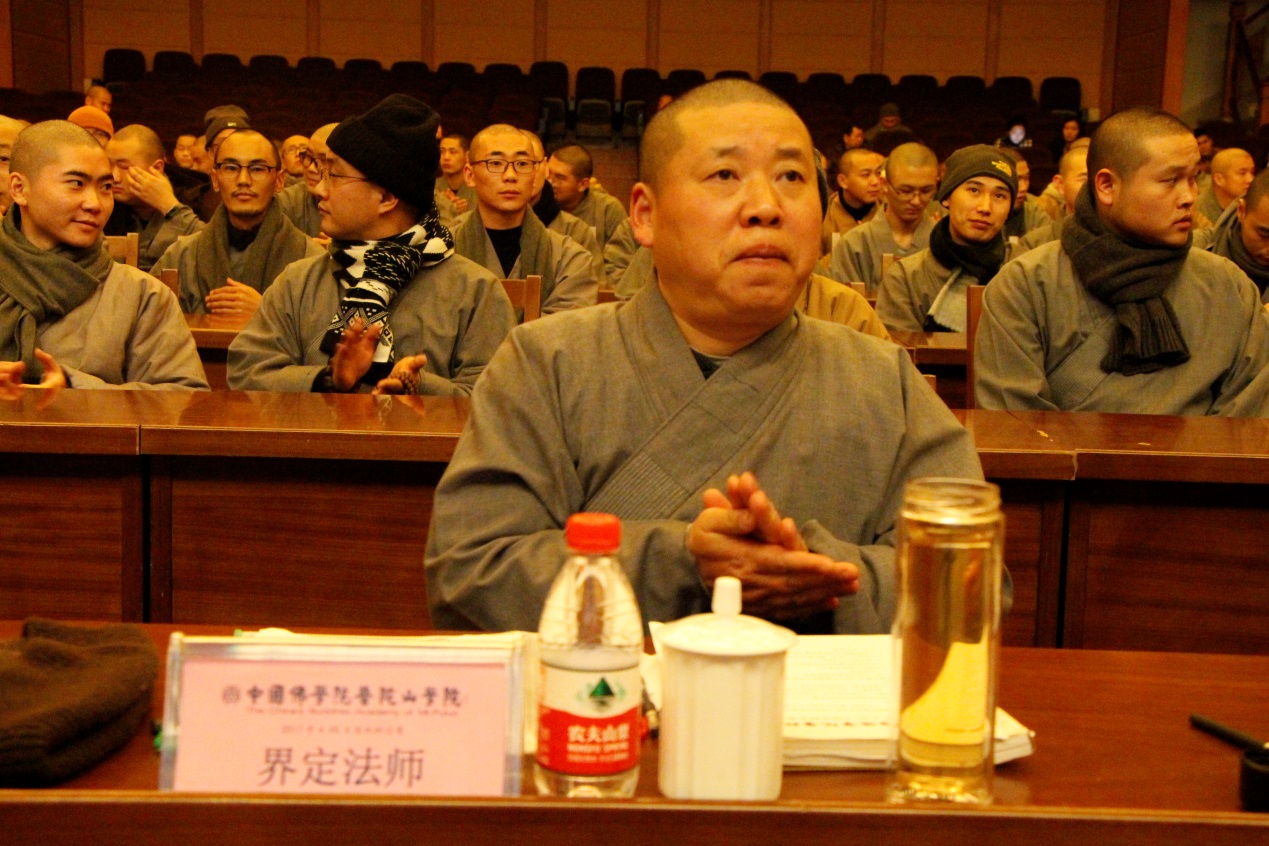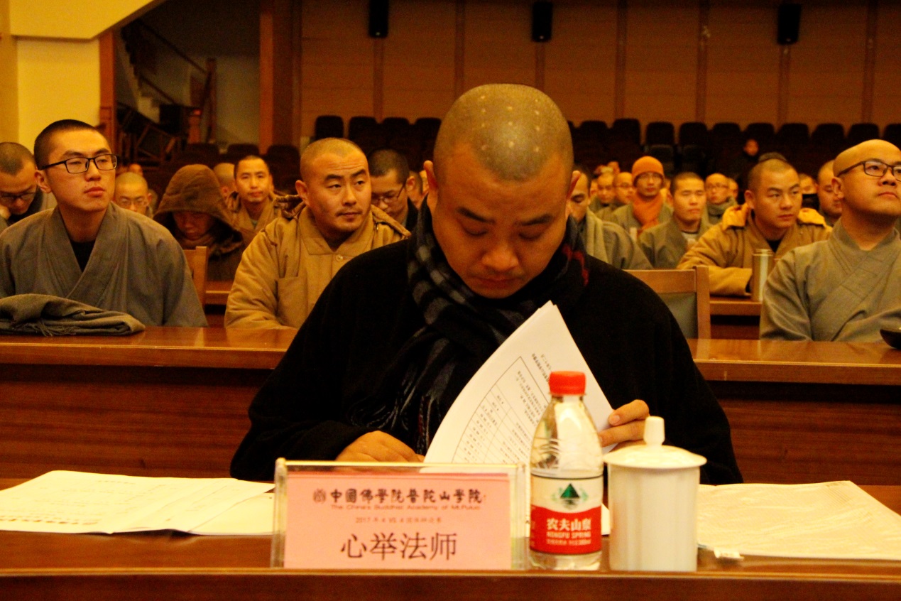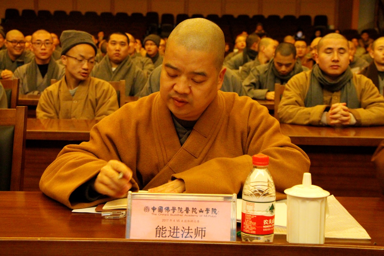 2017年12月17日,由中国佛学院普陀山学院主办,学院学僧会承办的中国佛学院普陀山学院2017年4VS4团体辩论赛,在学院国际会议中心举行开幕式及初赛首场辩论。学院副院长兼总务长界定法师,学院教务长能进法师,学院副教务长宽度法师、照慧法师,学院教研基地副主任心举法师,学院续圣法师、智明法师等应邀出席开幕式,并担任首场辩论赛评委。,此外,参加开幕式的还有2016级本科班主任昭悟法师、2016级预科班主任慧智法师、2017级本科班主任觉道法师、2017级预科班主任悟果法师,以及全院全体学僧、护法居士等。